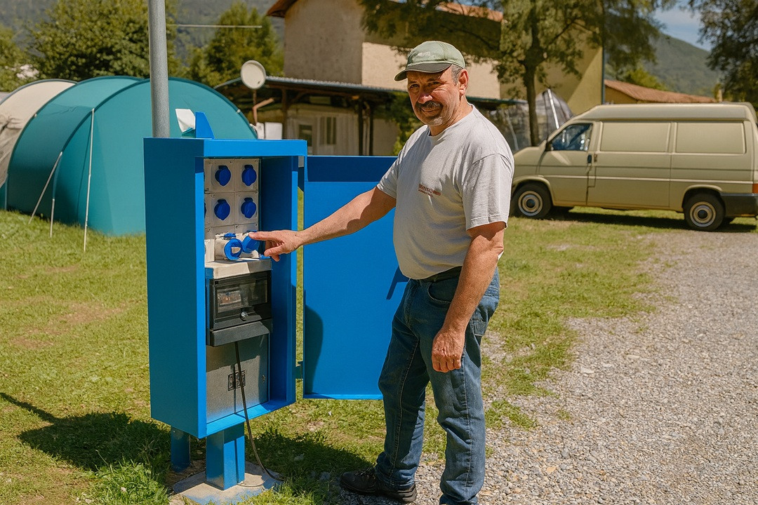 Ce camping du sud-ouest a opté pour nos bornes de distribution d'énergie afin d'alimenter les camping-cars stationnés sur son parking. Il a choisi le modèle Pratika, parfaitement adapté à son environnement extérieur.